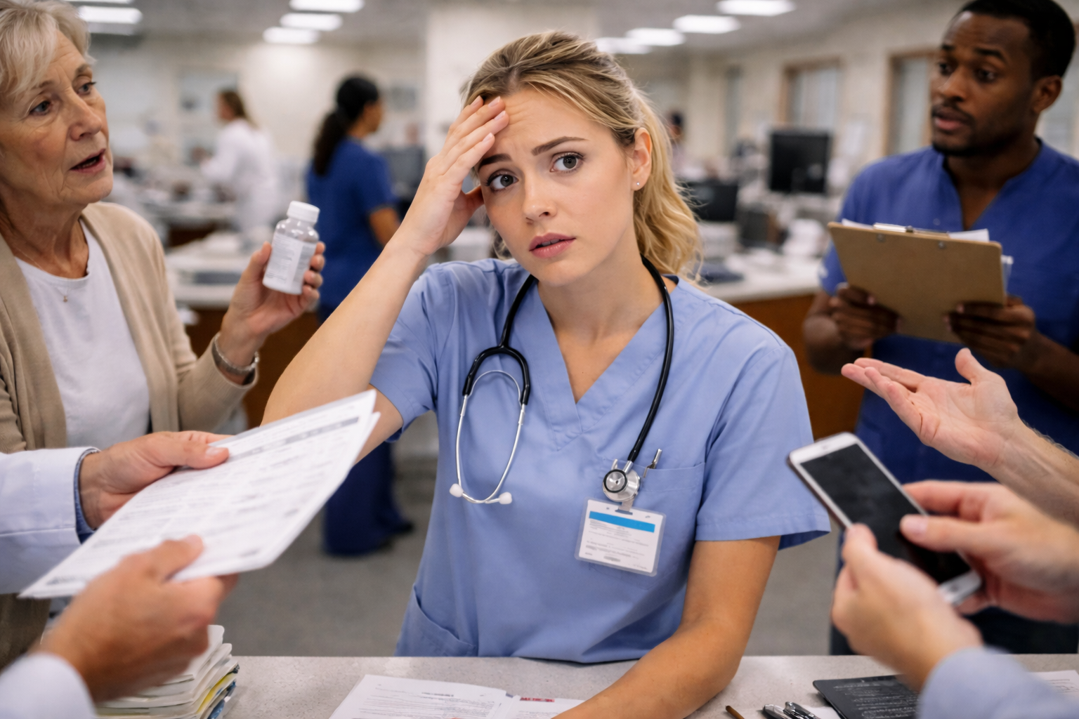 - Medication rounds, patient assessments, and other responsibilities overlap.